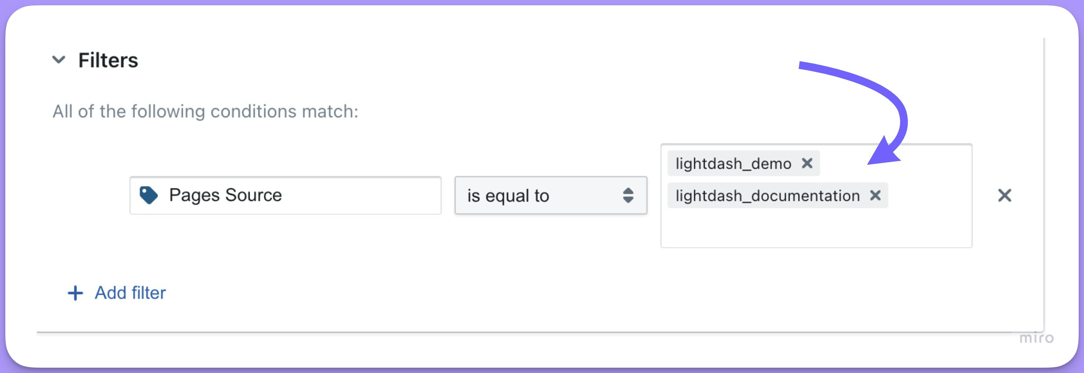 If you add multiple filters, you can choose to have ALL or ANY of the conditions match